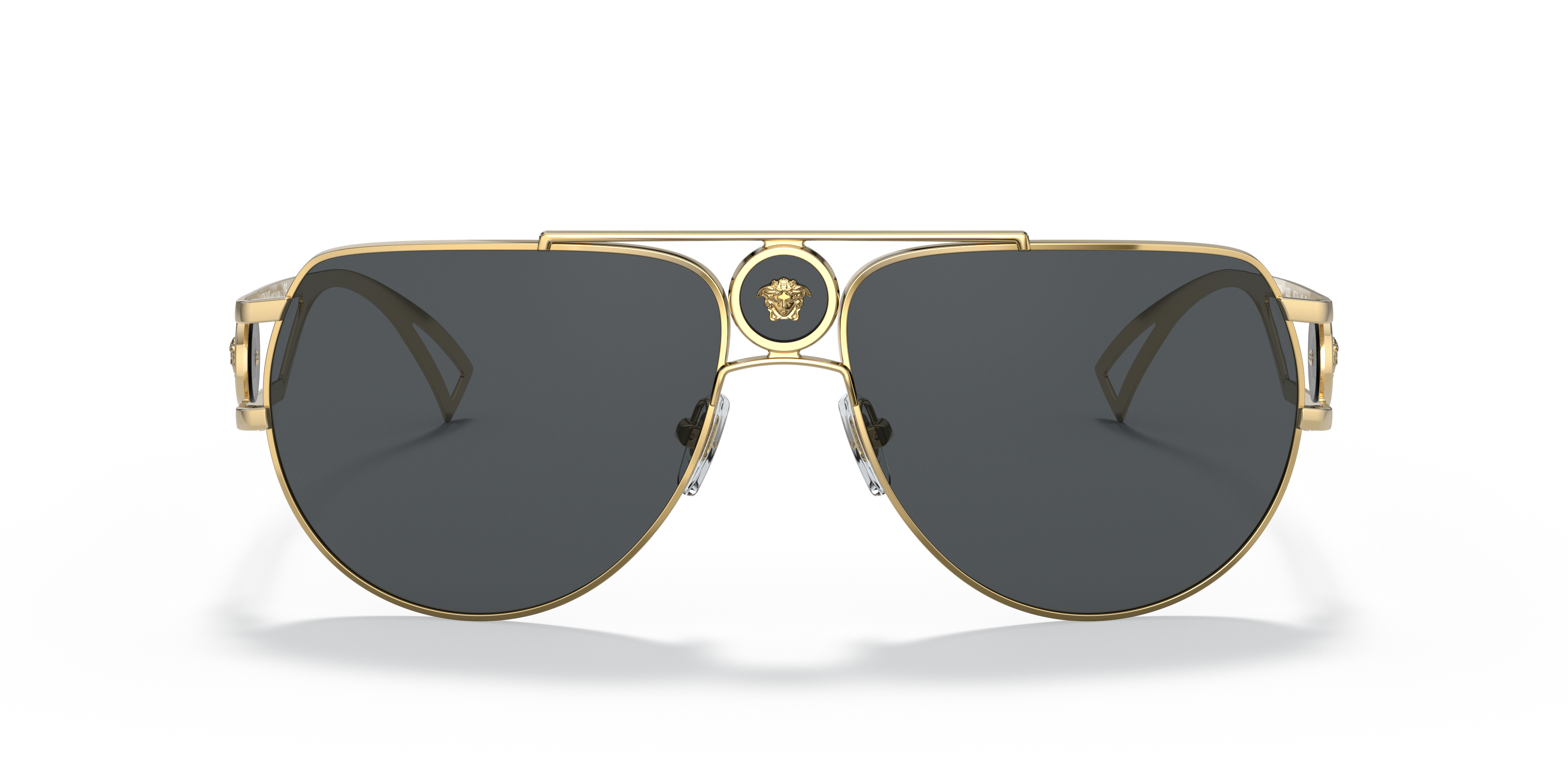 تقدم فيرساتشي نظارات شمسية VE2225 التي ترفع إطار الطيار إلى مستويات جديدة من الرقي. الإطار المعدني الذهبي، بزواياه المقطوعة المميزة وعدساته الرمادية الصلبة، هو شهادة على الأناقة الخالدة. مصنوعة من مواد فاخرة وتتميز بتفاصيل رأس ميدوسا الأيقونية على الصدغين، هذه النظارات الشمسية رائعة للغاية.