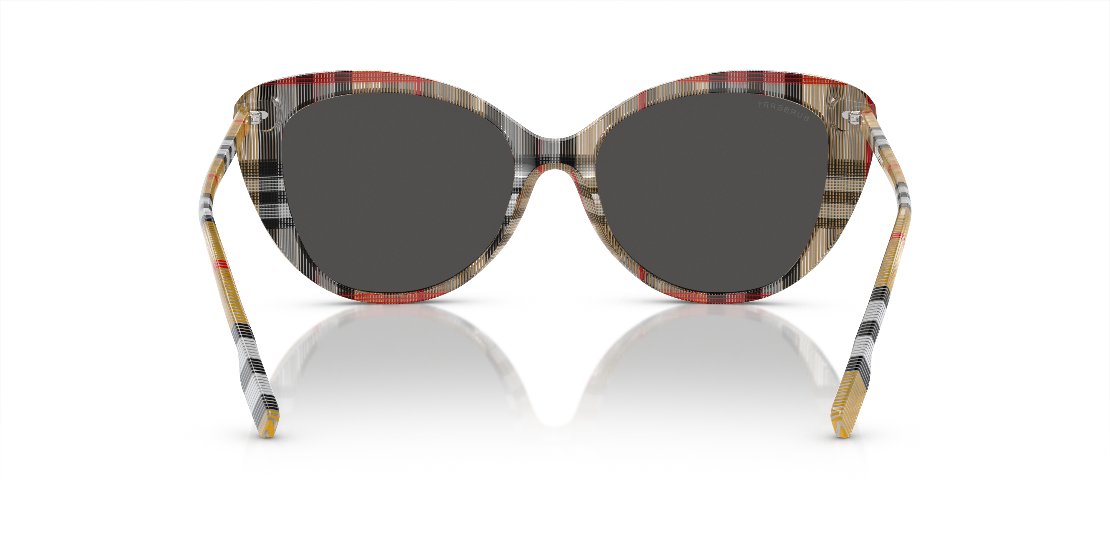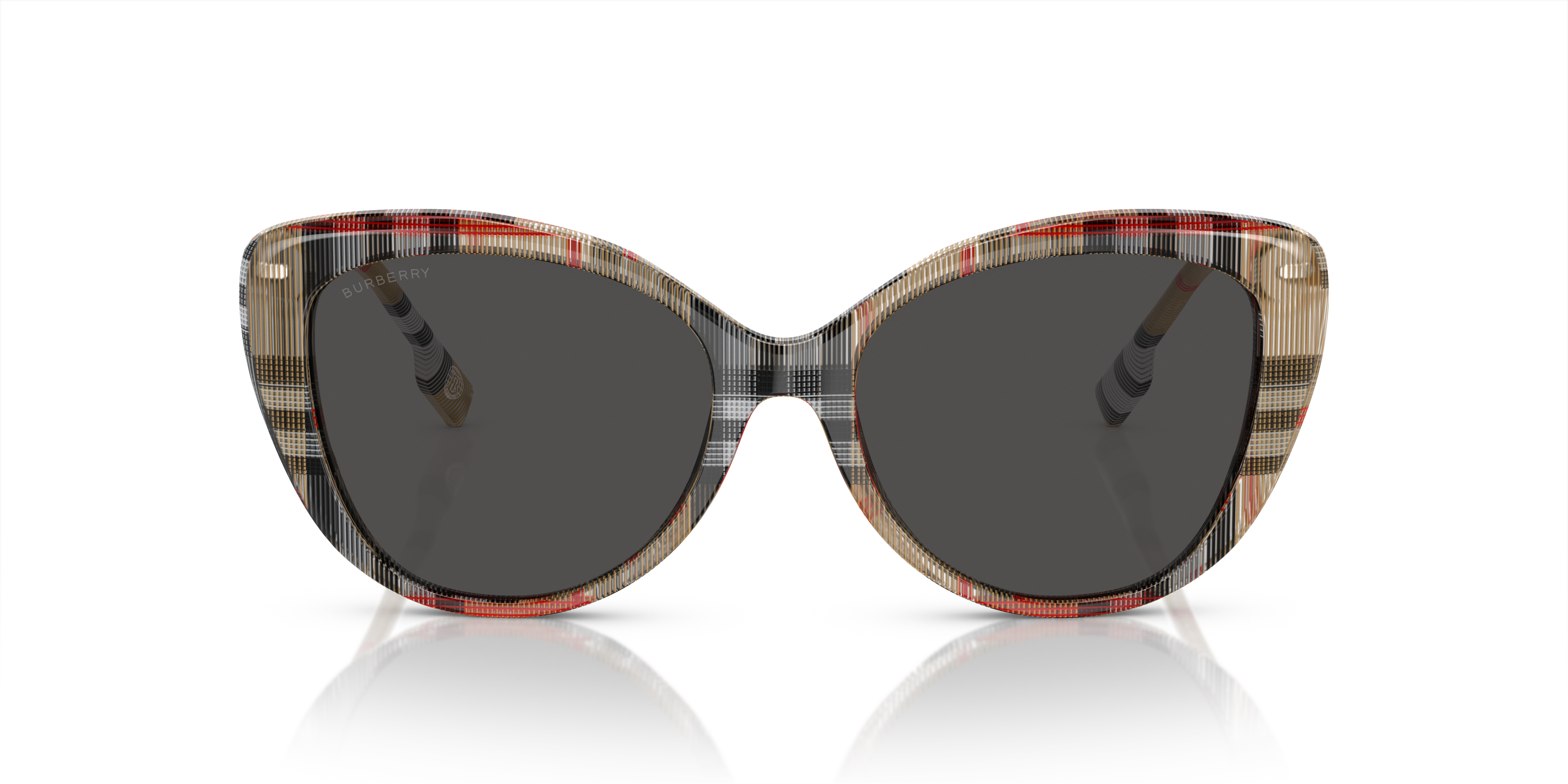 Embrace the iconic British style with Burberry BE4407 sunglasses. Crafted from solid dark grey lenses, these vintage check cat eye frames exude sophistication and timeless appeal. Elevate your look with a touch of heritage fashion flair and slip into the unmistakable aura that is Burberry.